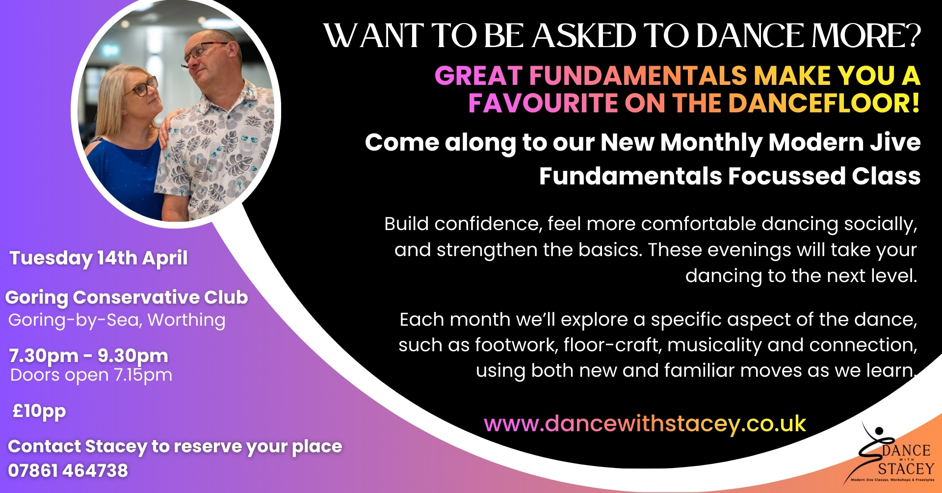Modern Jive Fundamentals – Monthly Focused Class – Tuesday 14th April 2026