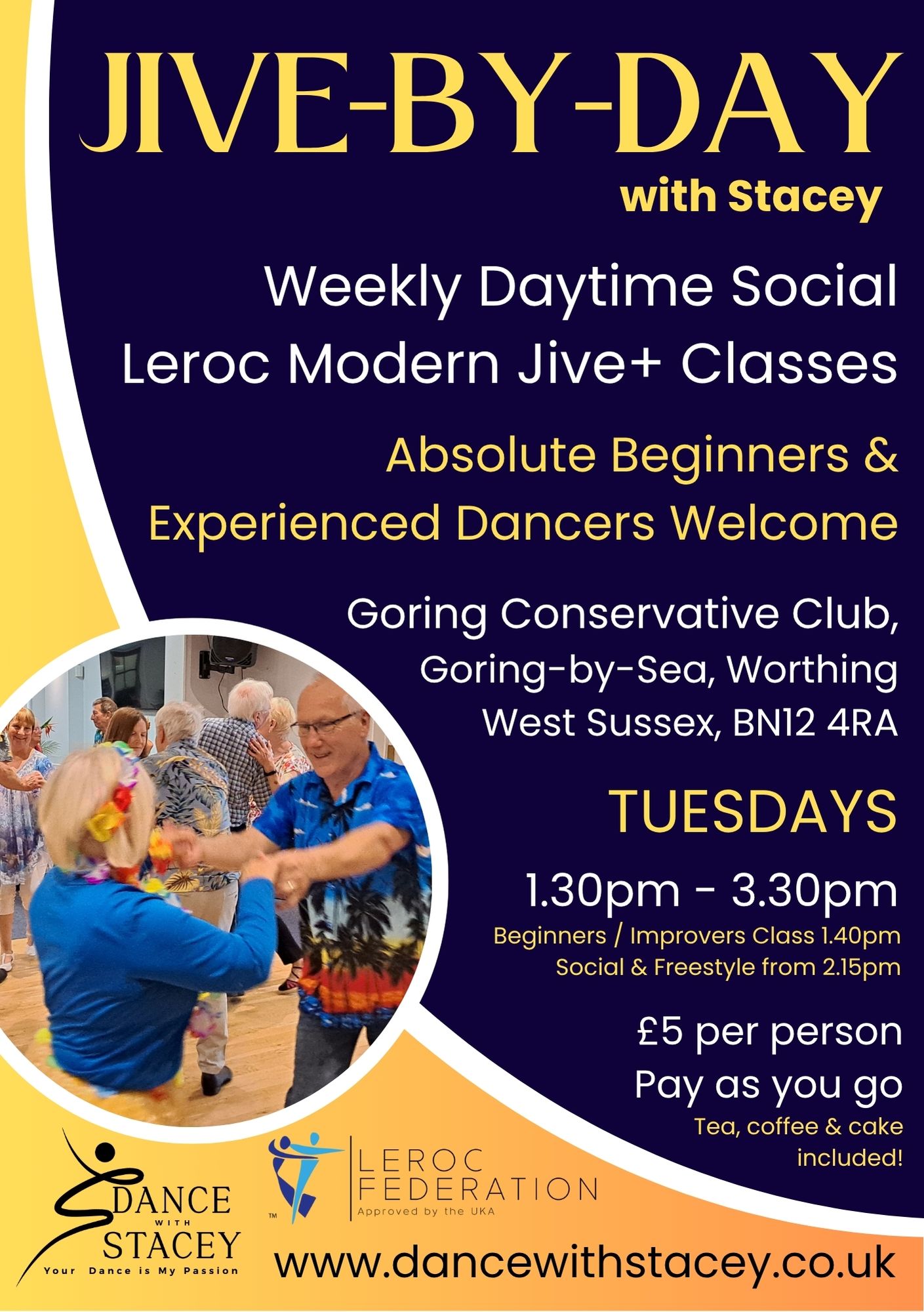 In the lovely Molson Hall of Goring Conservative Club, we are delighted to bring you ‘Jive-by-Day’, your weekly opportunity to dance, connect and unwind during daylight hours!